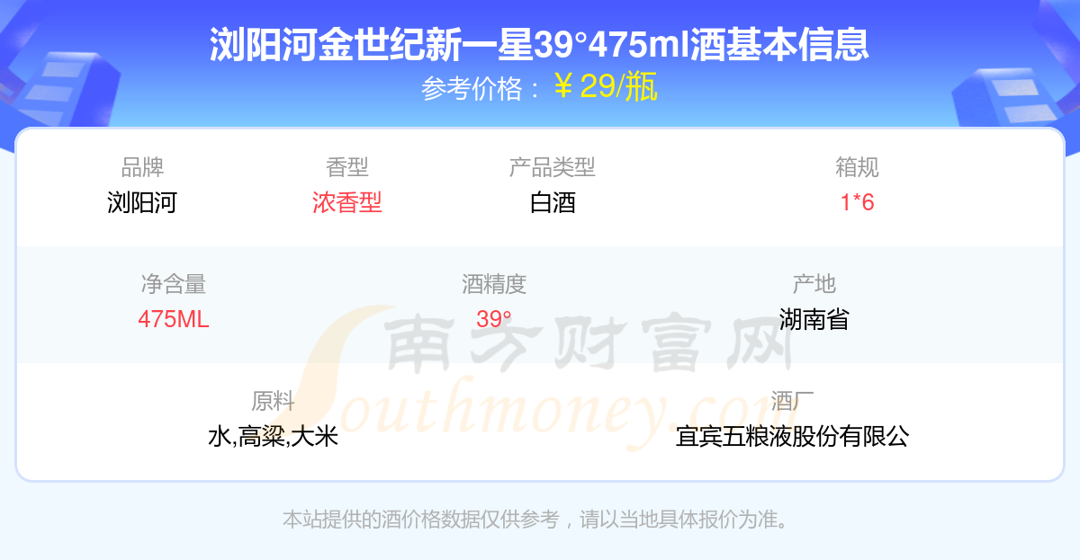2025年瀏陽(yáng)河金世紀(jì)新一星39°475ml酒價(jià)格表查詢