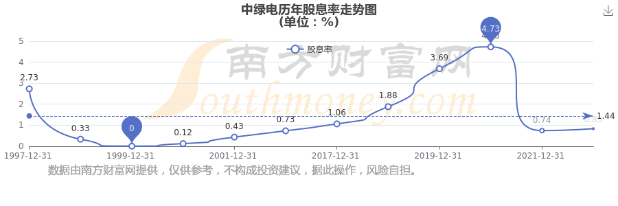 中綠電最新一次公布的分紅方案為10派1元。本次權益分派股權登記日為2023年6月5日,除權除息日為2023年6月6日,派息日為2023年6月6日。