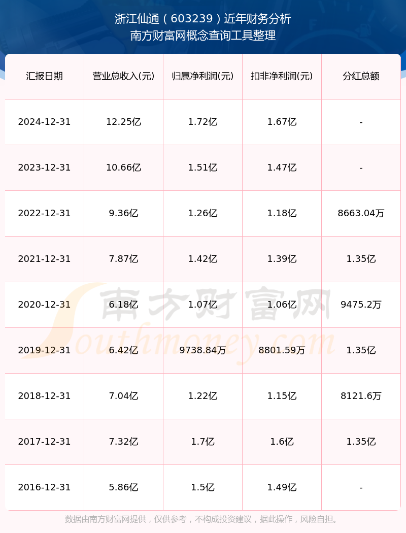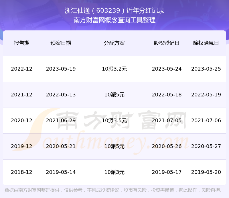 浙江仙通歷年分紅派息情況如下表所示: