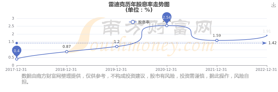 近年雷迪克年度股息率走勢如下圖: