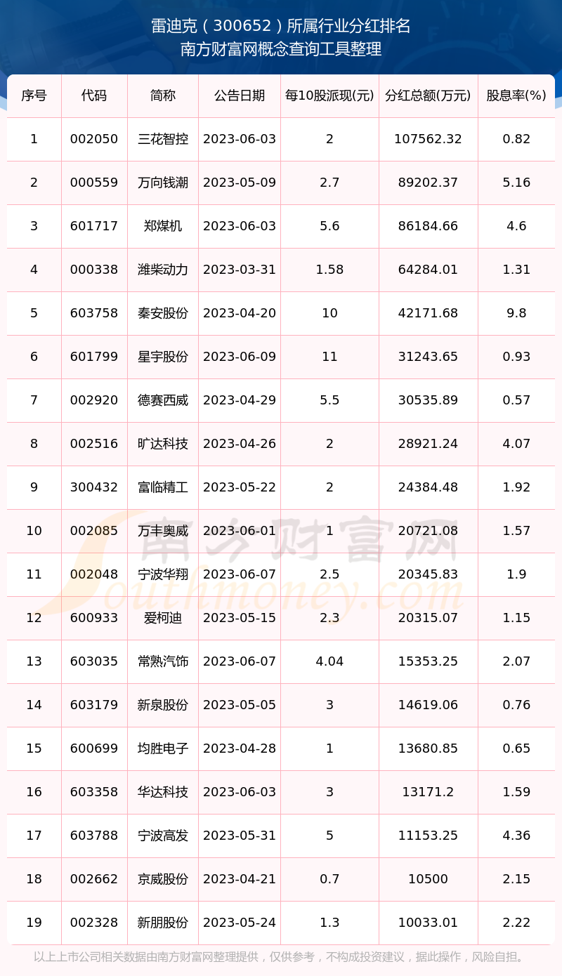 二、雷迪克300652行業(yè)分紅排名