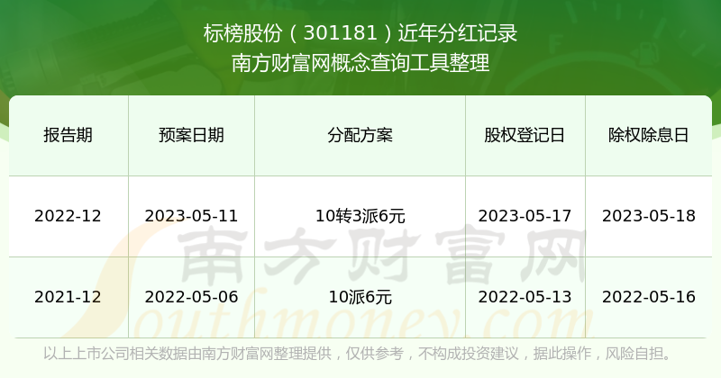 標榜股份最新一次公布的分紅方案:10轉3派6元。