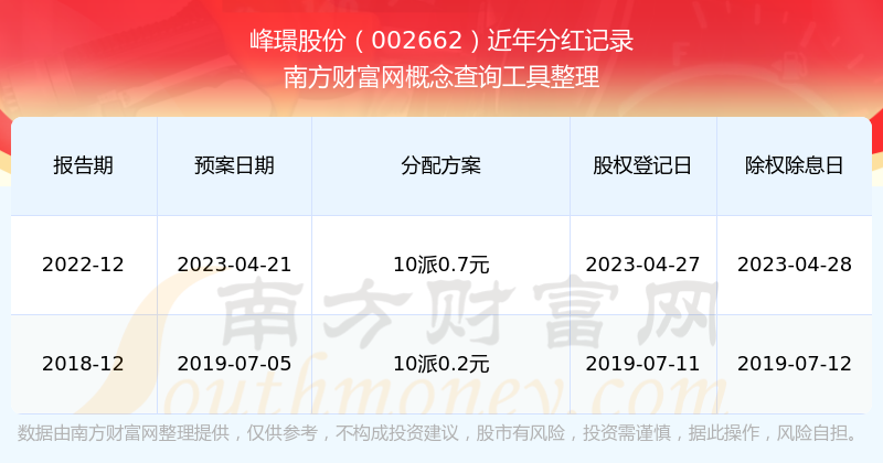峰璟股份最新一次公布的分紅方案:10派0.7元。