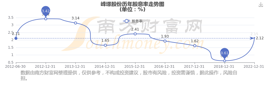 峰璟股份歷年股息率走勢(shì)如下圖: