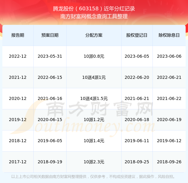 騰龍股份最新一次公布的分紅方案:10派0.8元。