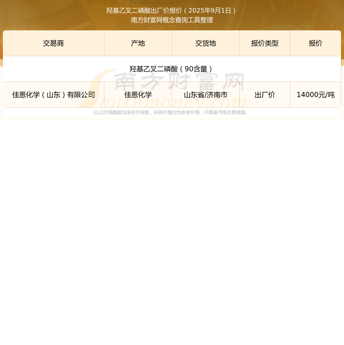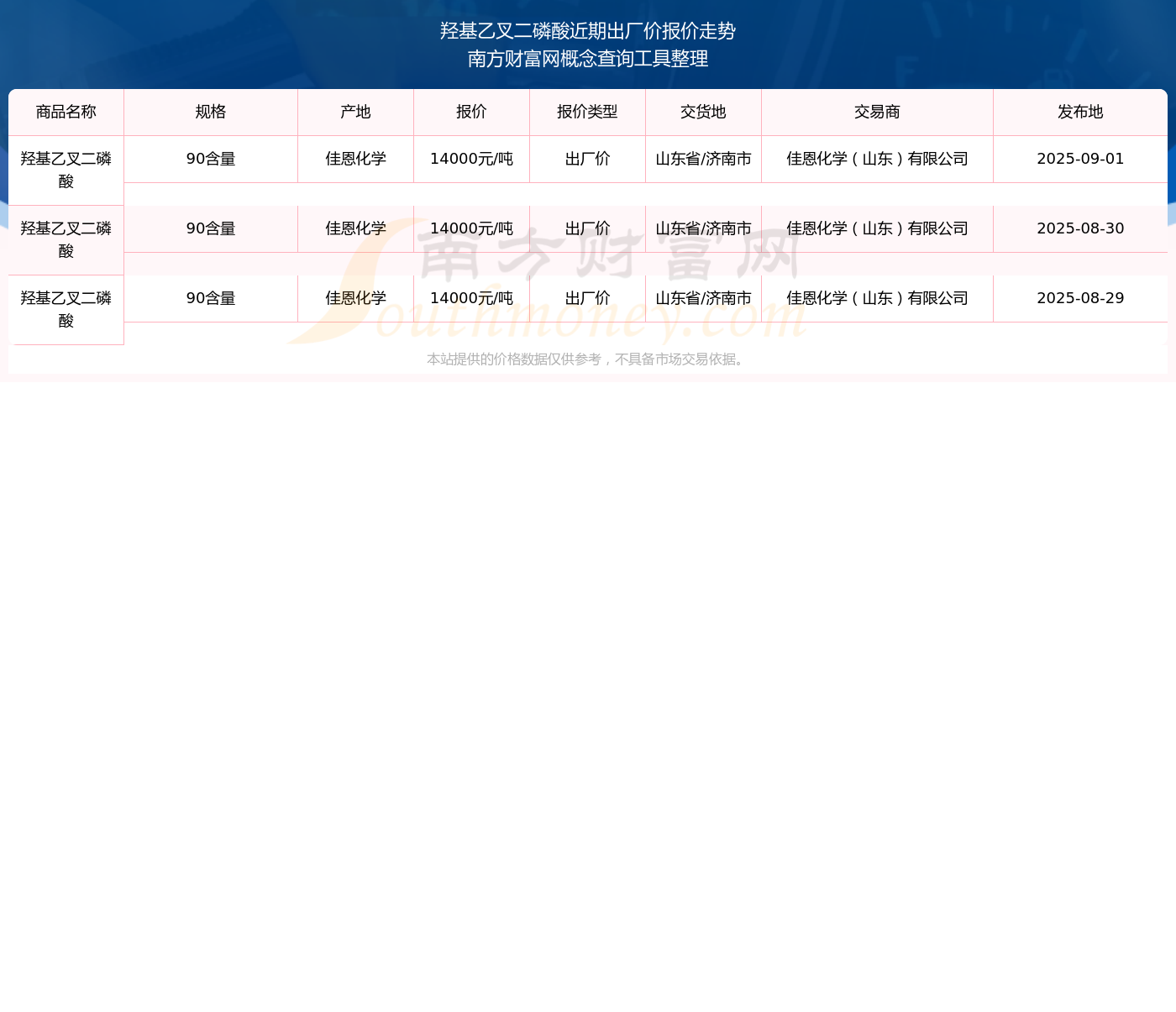 今日價(jià)格行情:2025年9月1日羥基乙叉二磷酸出廠價(jià)報(bào)價(jià)
