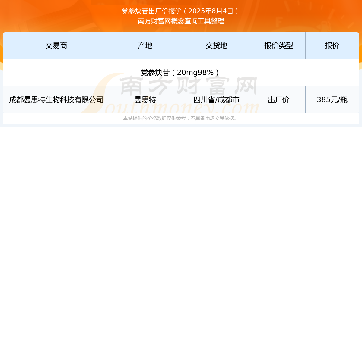 2025年8月4日黨參炔苷出廠價(jià)報(bào)價(jià)多少_近期價(jià)格走勢(shì)