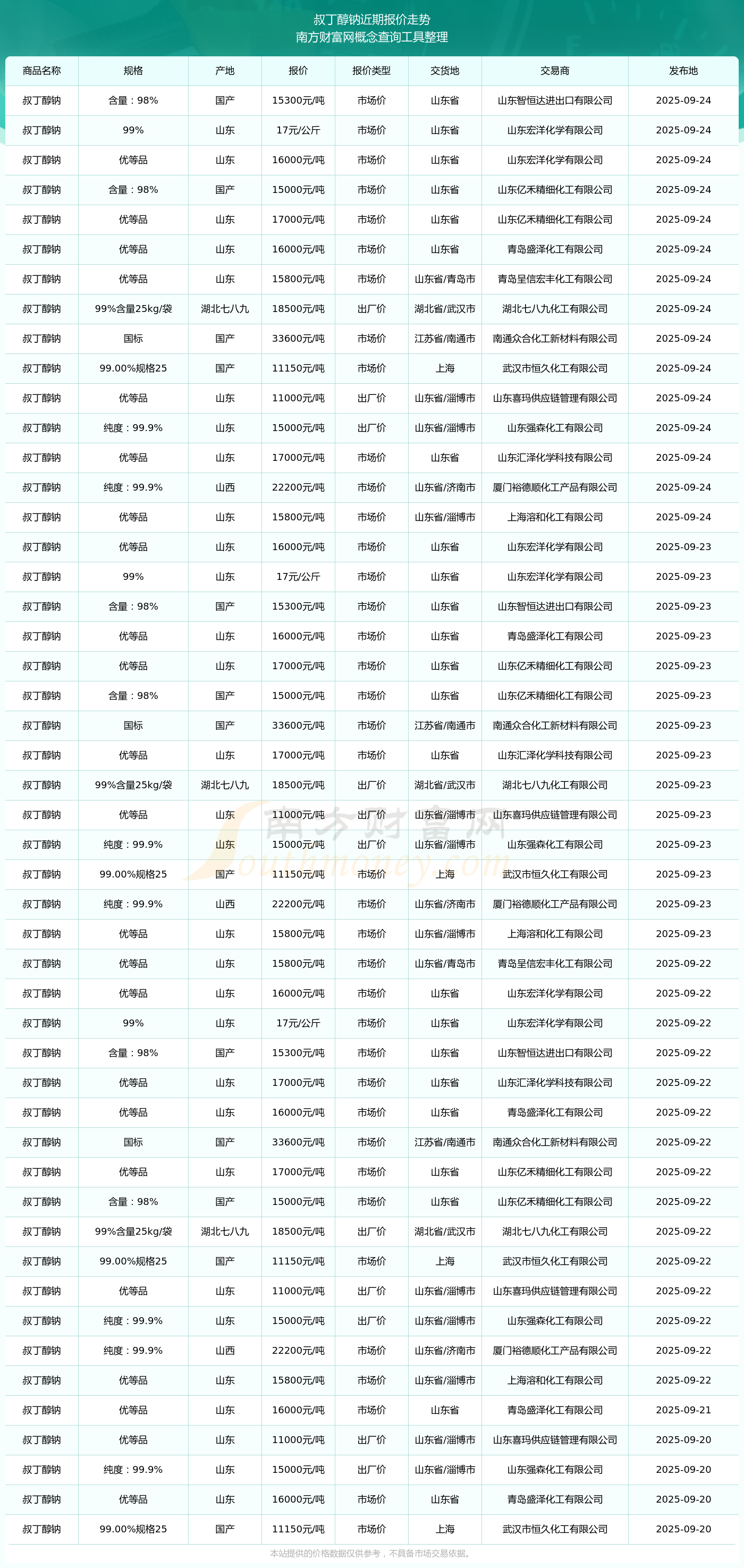 2025年9月24日叔丁醇鈉報(bào)價(jià)行情