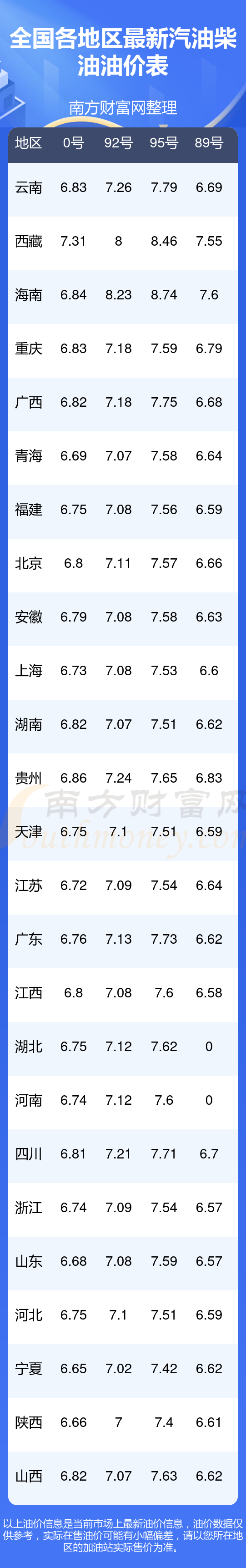 2025年9月26日全國油價調(diào)整及最新汽油價格表