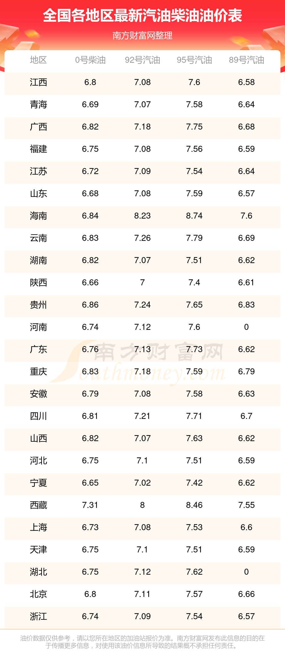 以上油價(jià)信息是當(dāng)前市場(chǎng)上最新油價(jià)信息,油價(jià)數(shù)據(jù)僅供參考,實(shí)際在售油價(jià)可能有小幅偏差,請(qǐng)以您所在地區(qū)的加油站實(shí)際售價(jià)為準(zhǔn)。