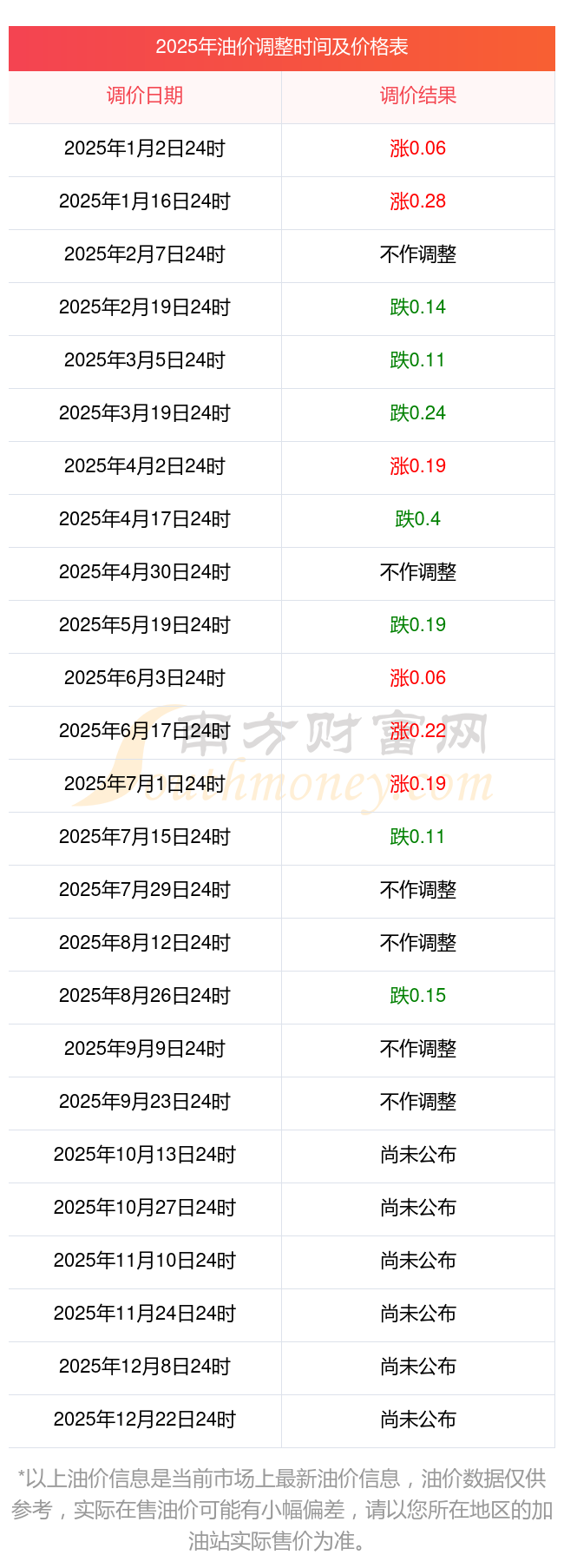 - 2025年油價(jià)調(diào)整日歷(09-26)請(qǐng)查收!