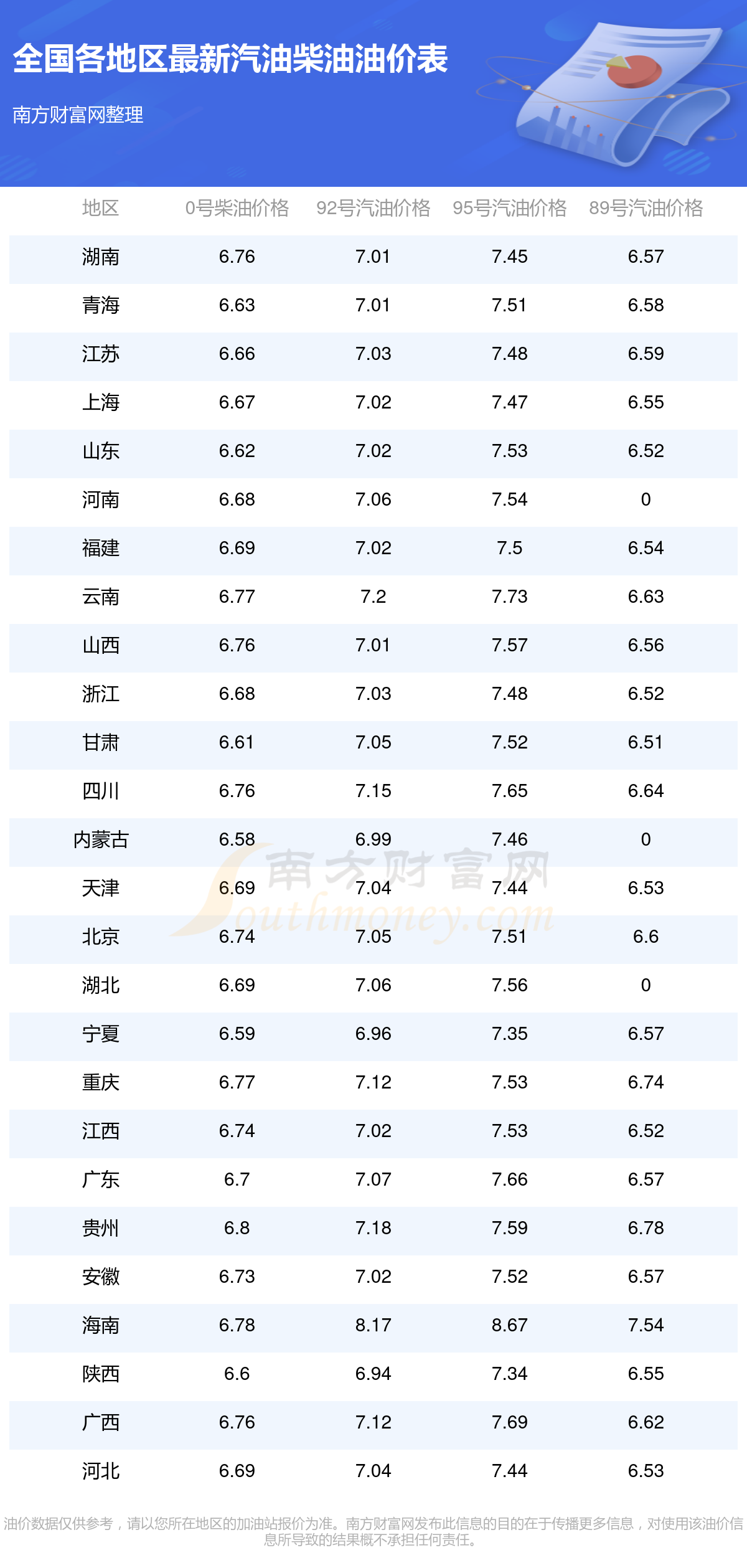 油價數(shù)據(jù)僅供參考,請以您所在地區(qū)的各加油站報價為準(zhǔn)。
