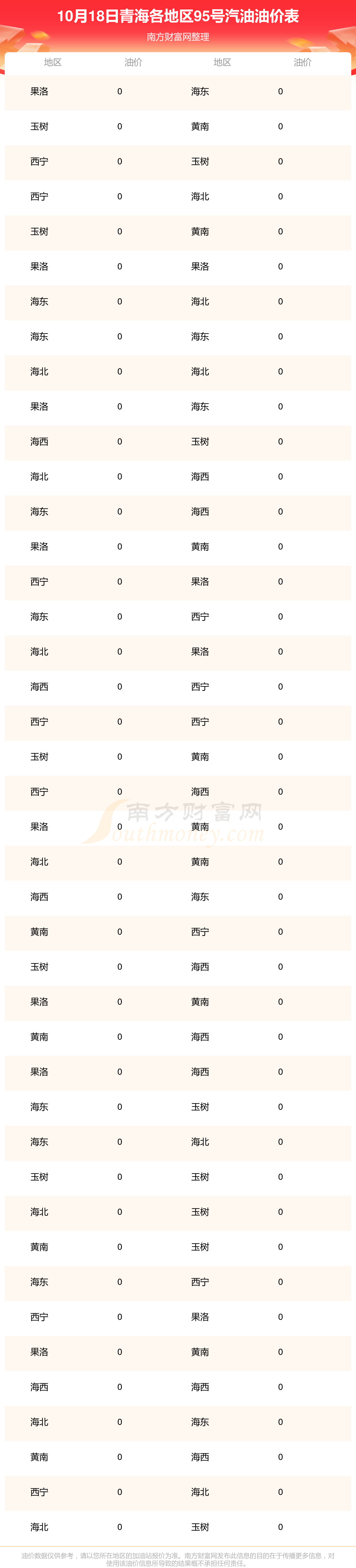 2025年10月18日青海95號汽油最新價(jià)格一覽表