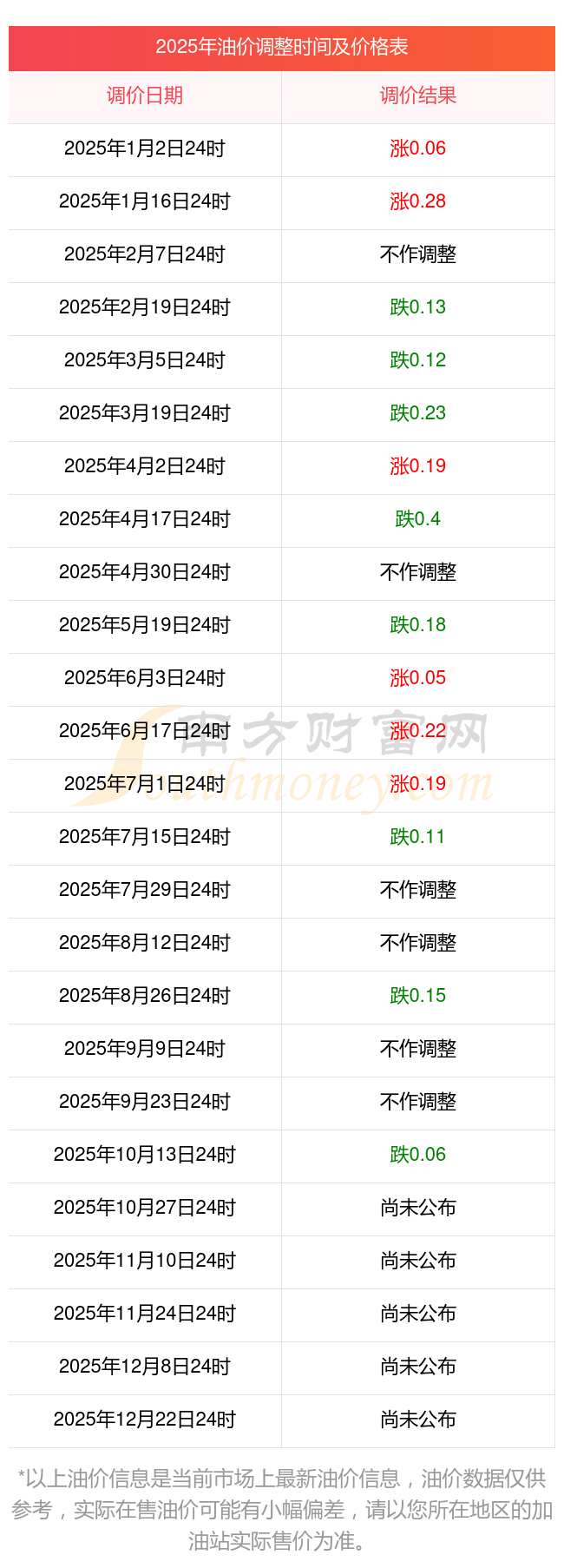 馬尾區(qū)10月18日油價調(diào)整時間及價格表