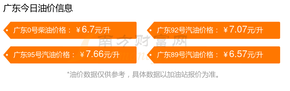 10月18日,廣東汽油、柴油的價格為10月14日調(diào)整后的價格。具體為:92號汽油7.07元,下跌了0.06元;95號汽油7.66元,下跌了0.07元;89號汽油6.57元,下跌了0.05;0號柴油6.7元,下跌了0.06元。下一輪油價調(diào)整時間10月27日24時,距離現(xiàn)在還有9.95天。