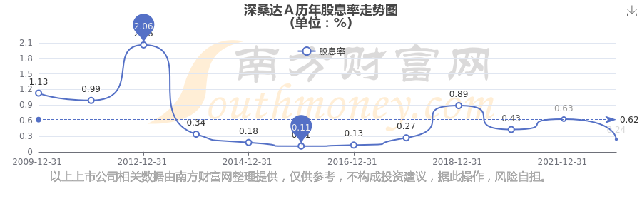 近年深桑達A年度股息率走勢如下圖: