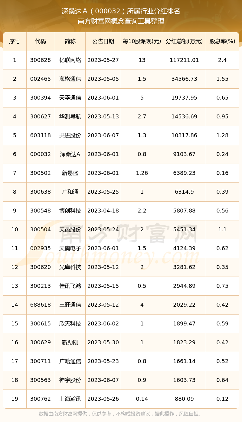 二、深桑達A000032行業(yè)分紅排名
