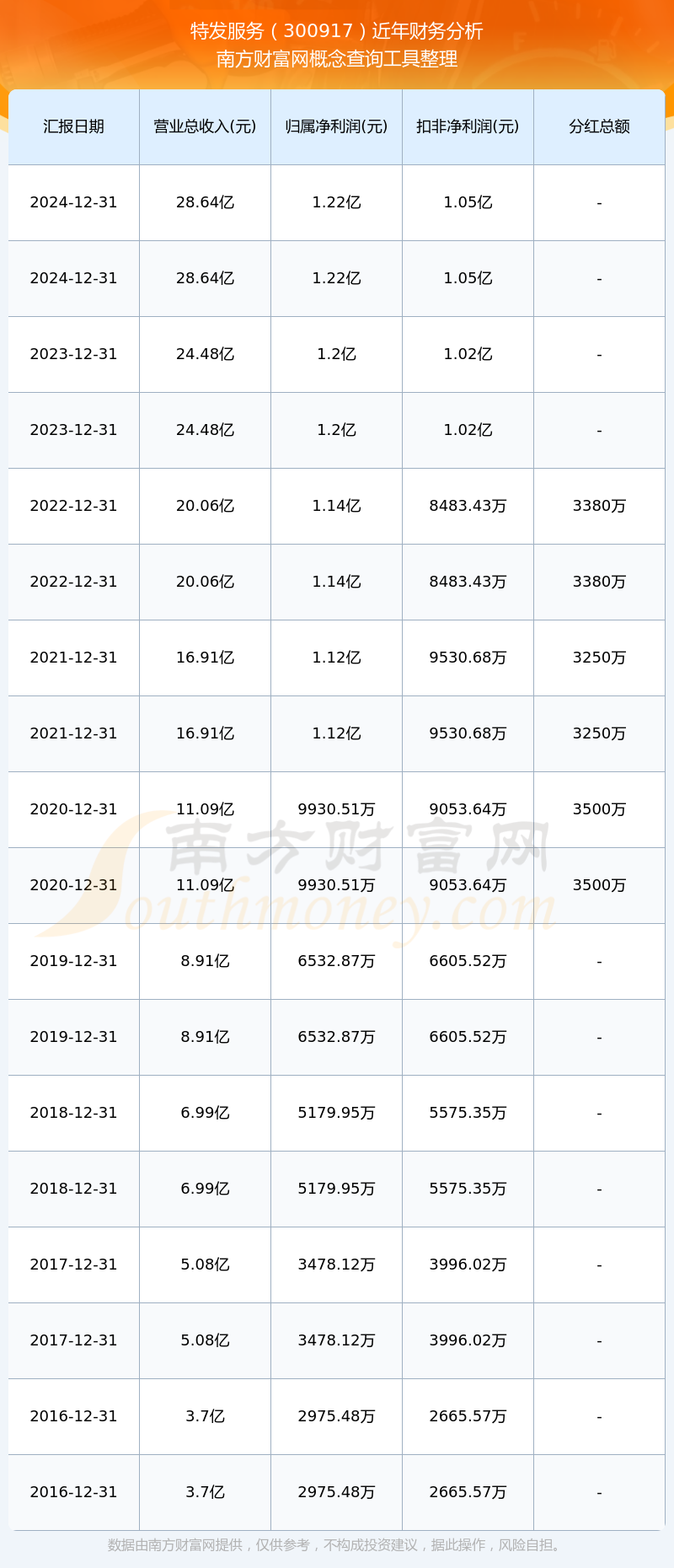 近年特發(fā)服務(wù)分紅派息情況如下表所示:
