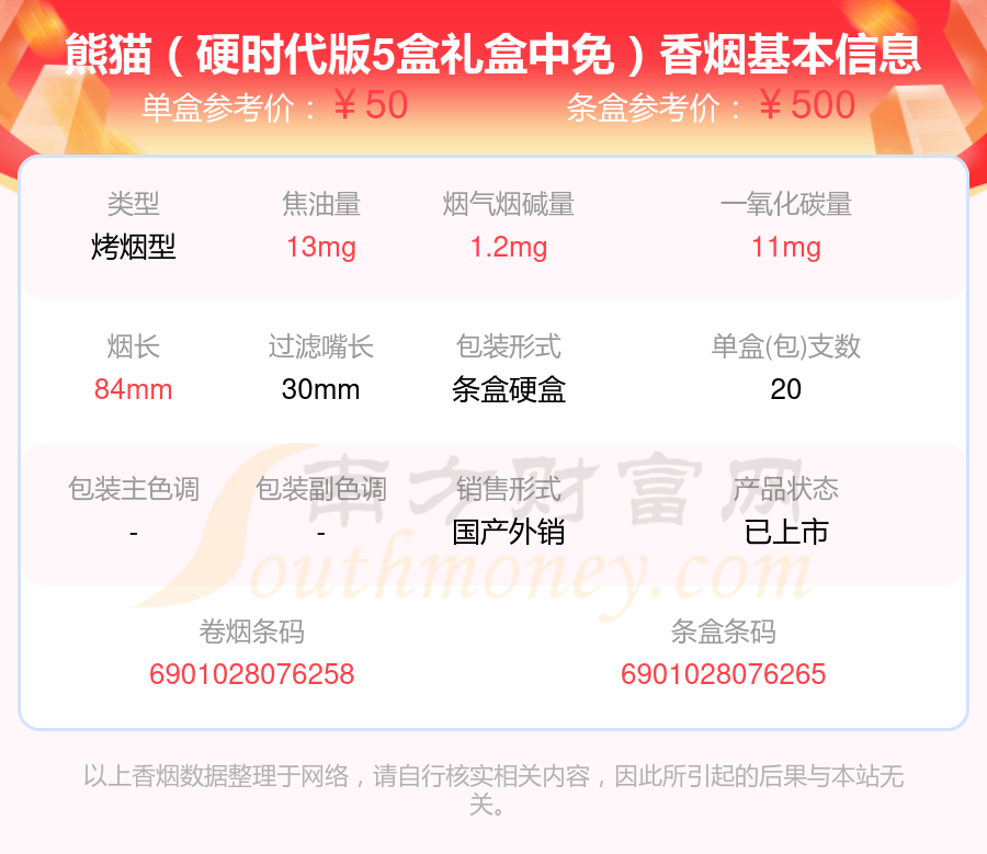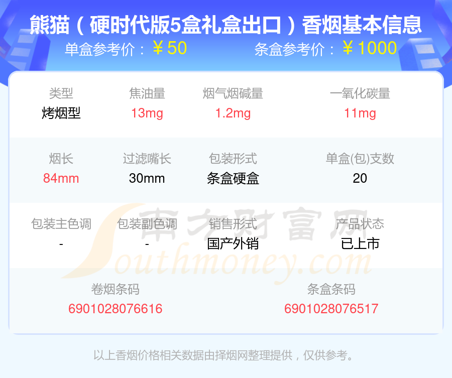 2、熊貓(硬時(shí)代版5盒禮盒出口)