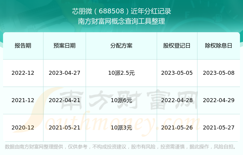芯朋微最新一次公布的分紅方案為10派2.5元。本次權(quán)益分派股權(quán)登記日為2023年5月5日,除權(quán)除息日為2023年5月8日,派息日為2023年5月8日。