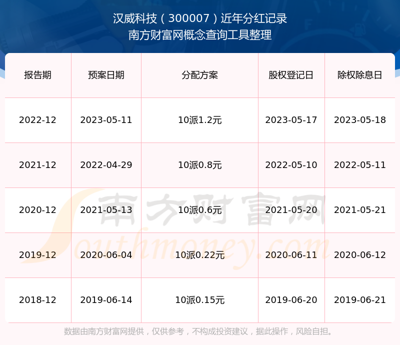 漢威科技最新一次公布的分紅方案:10派1.2元。
