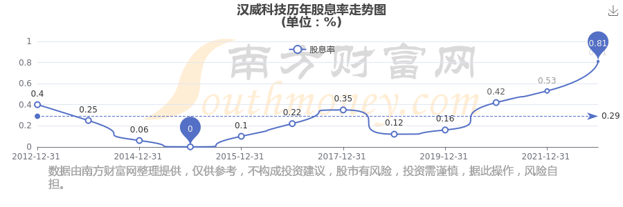 漢威科技?xì)v年股息率走勢(shì)如下圖: