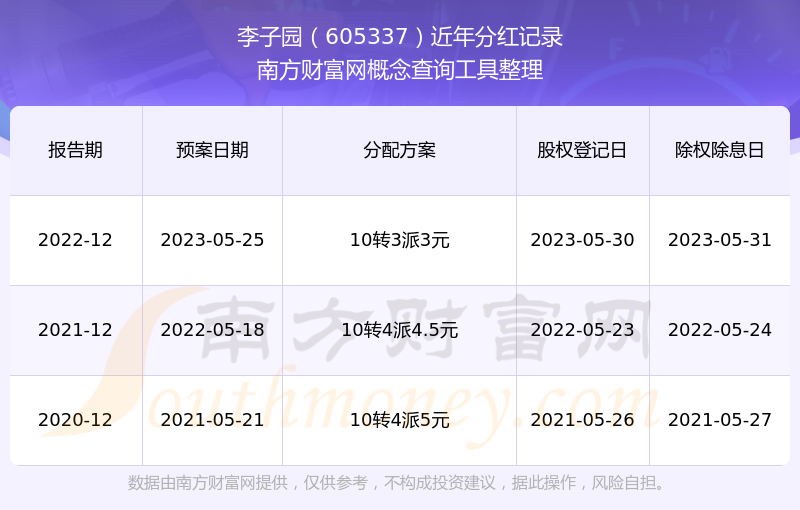 李子園最新一次公布的分紅方案:10轉(zhuǎn)3派3元。