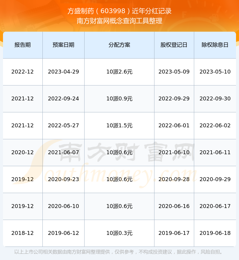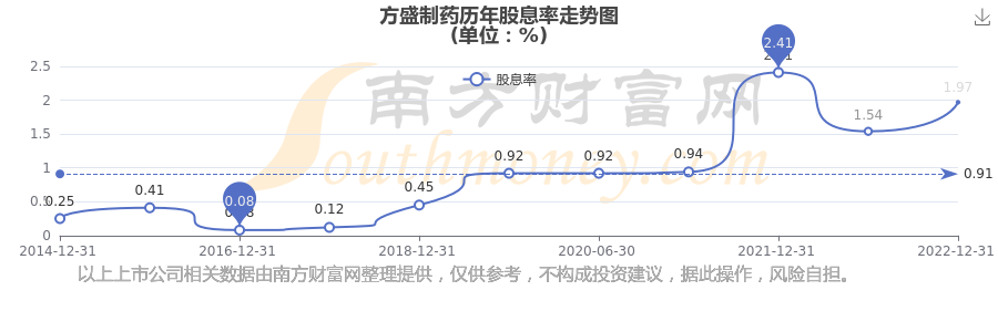 方盛制藥最新一次公布的分紅方案:10派2.6元。