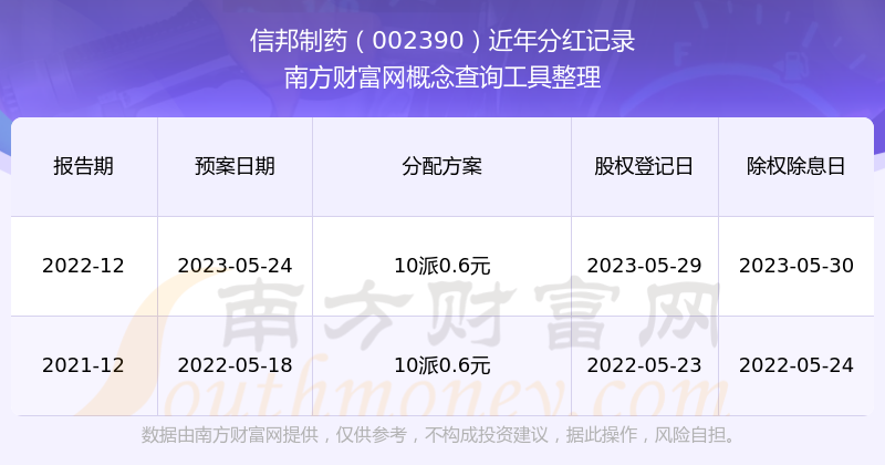 信邦制藥最新一次公布的分紅方案:10派0.6元。