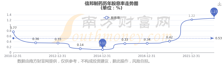 信邦制藥歷年股息率走勢如下圖: