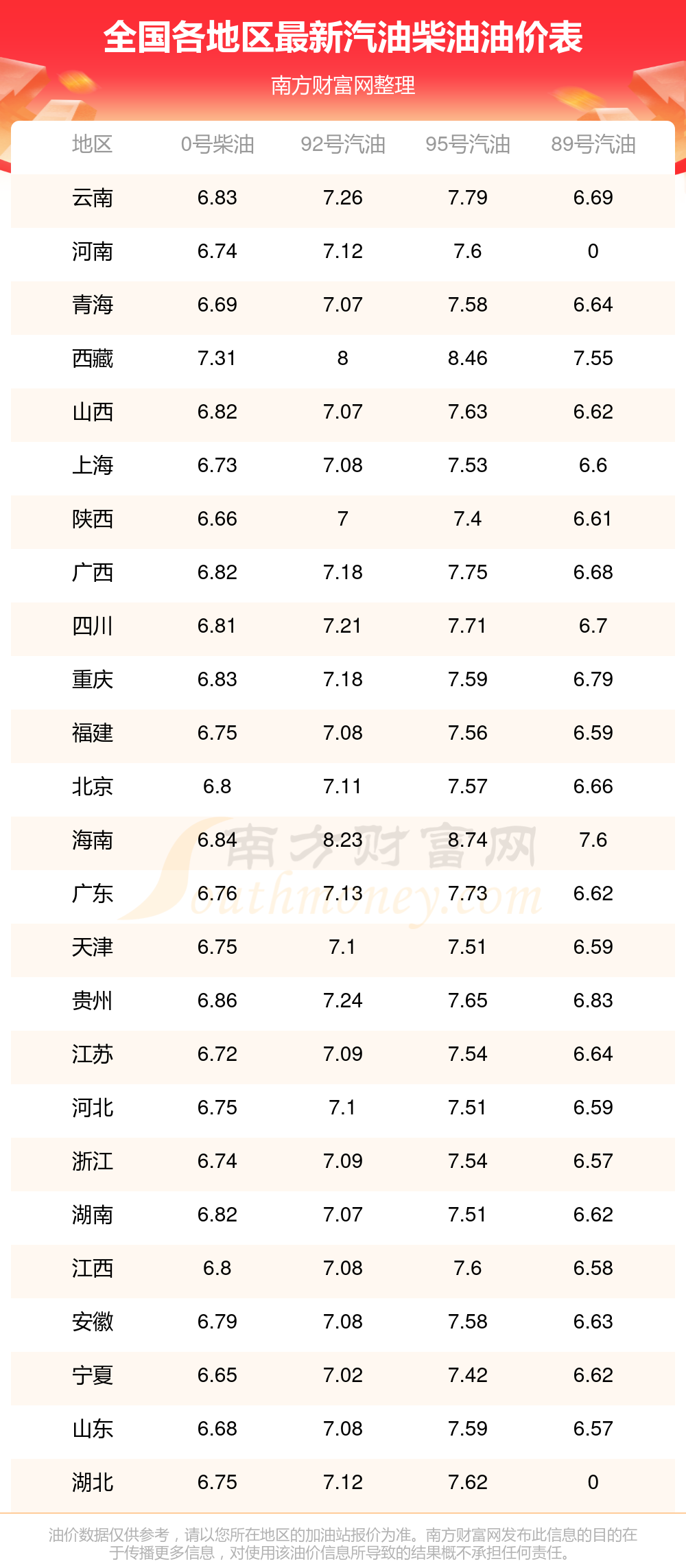 2025年9月26日全國油價調(diào)整及最新汽油價格表