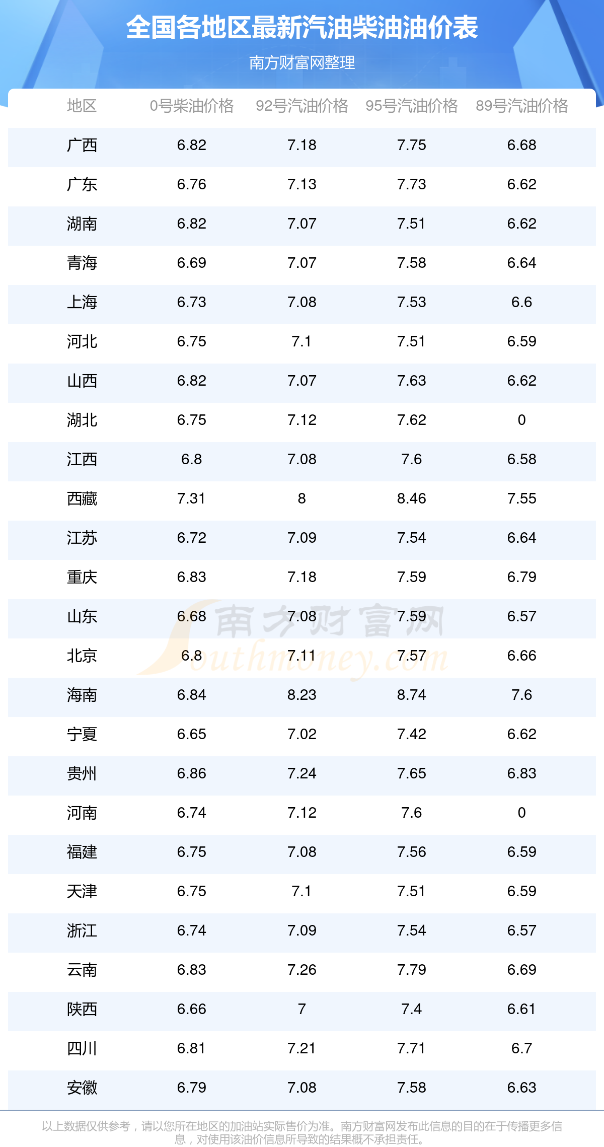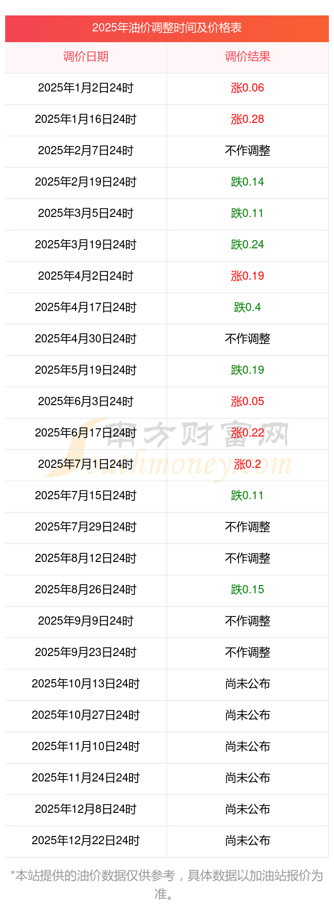2025年9月30日全國各地汽油價格調(diào)整時間及價格一覽表