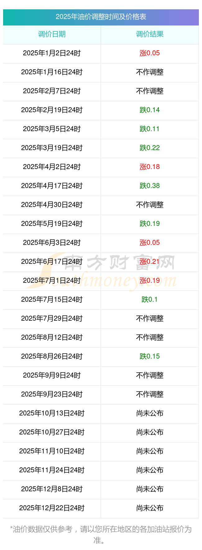 2025年9月30日全國油價調(diào)整時間及價格一覽表