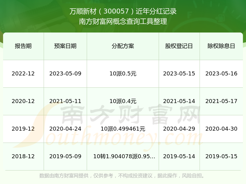 一、萬(wàn)順新材(300057)股票分紅記錄