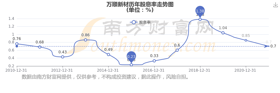 近年萬(wàn)順新材年度股息率走勢(shì)如下圖: