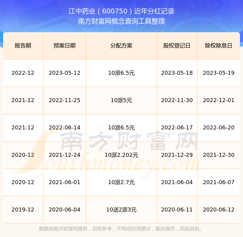 江中藥業(yè)最新一次公布的分紅方案:10派6.5元。