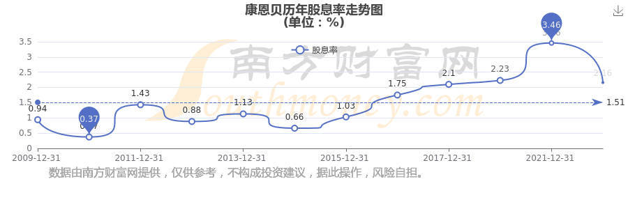 康恩貝歷年股息率走勢(shì)如下圖: