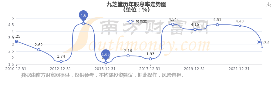 近年九芝堂年度股息率走勢(shì)如下圖: