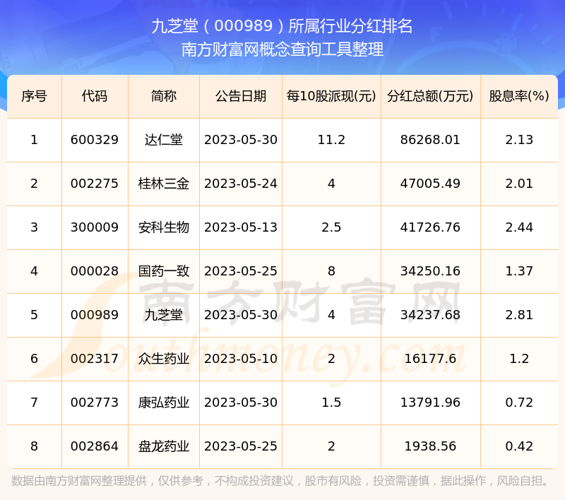 按照南方財(cái)富網(wǎng)趨勢(shì)選股系統(tǒng)統(tǒng)計(jì),九芝堂所屬行業(yè)為中成藥行業(yè),中成藥行業(yè)分紅排名情況如下表: