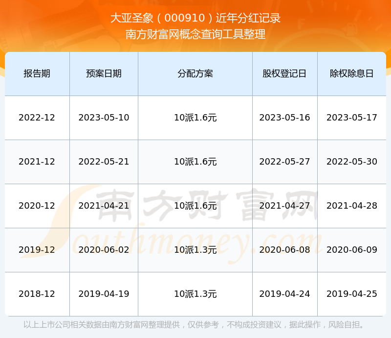 大亞圣象最新一次公布的分紅方案:10派1.6元。